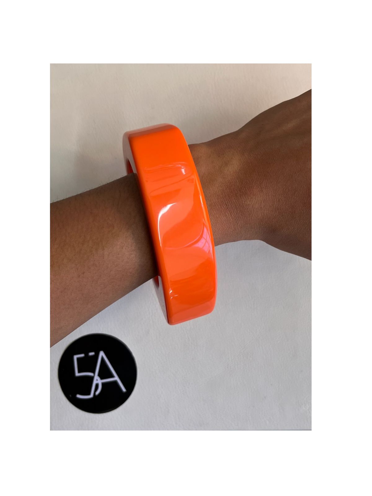 Pulsera rígida de acabado brillante en tono naranja intenso. Un diseño moderno y llamativo, ideal para dar un toque de color y personalidad a cualquier look.